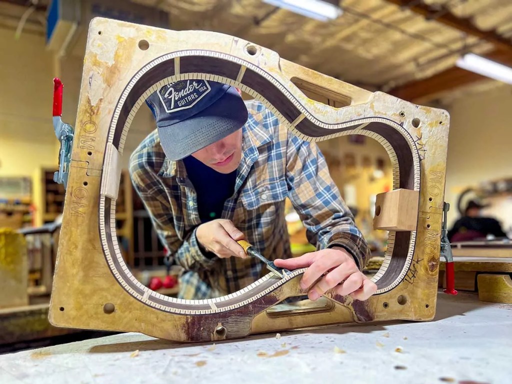 “Ever since I started getting wood for guitars, I’ve come across pieces that were just too good to use and set them aside for later,” says Hoover, 74. “And now that it’s later, I wanted to do something with this legacy and make some guitars using not just the prettiest but the rarest, the most unobtainable and irreplaceable stuff.”