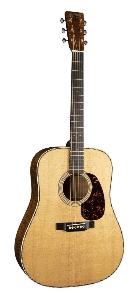 BODY 14-fret super dreadnought body; VTS (Vintage Tone System) Sitka spruce top; scalloped X-bracing; three-piece Guatemalan rosewood or koa back and sides; ebony bridge; drop-in saddle with 2-5/32″ string spacing; tortoise pattern pickguard; gloss finish