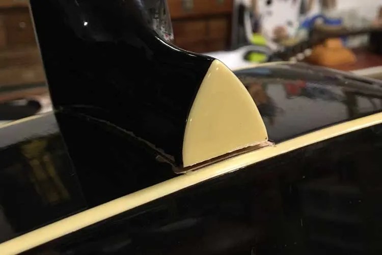 This is one of the advantages of shopping at a vintage guitar dealer—they usually have a repair department. It’s true that there will be a markup at a vintage dealer, but it’s not a mystery what you’re paying for. They have sourced a guitar they thought was interesting and marketable, and fixed it as needed, because a piece that’s in good shape commands a higher price than one requiring restoration.