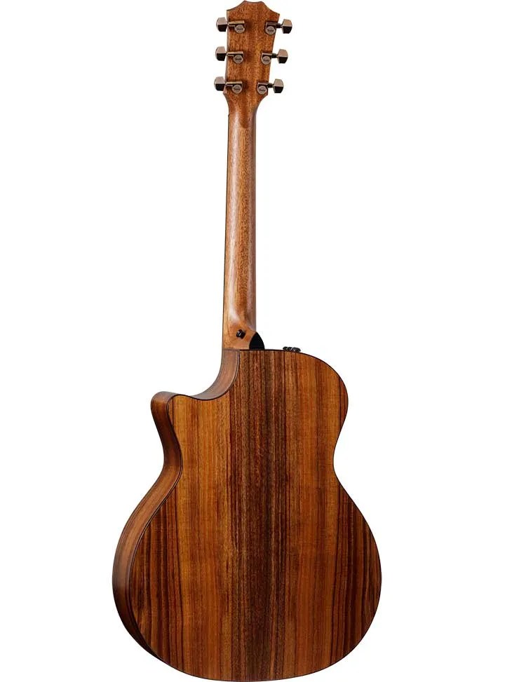 BODY Grand Auditorium shape with Venetian cutaway; solid koa top, back, and sides; V-Class bracing; maple and black maple purfling with Indian rosewood binding; paua shell and Indian rosewood rosette; dark-stained figured maple pickguard; water-based matte finish