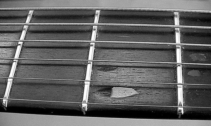 When working on your guitar, make sure the bushings are a tight fit, or else put a plastic bag over the headpiece so any lost parts will get safely caught. It’s also a good idea to check the bushings on modern tuners periodically—they are very often loose, and sometimes the washers beneath them can cause mysterious rattles and buzzes that are maddening to diagnose. Don’t crank them too hard as it can cause problems in the surrounding finish. Simply snug them up with an open-end wrench or socket. Nearly every cast tuner around uses a 10mm wrench. When lubricating tuners, especially older open-back models with press-fit bushings, I also put a tiny drop of oil between the string post and bushing, at the 6 o’clock location where the bushing is closest to the nut.